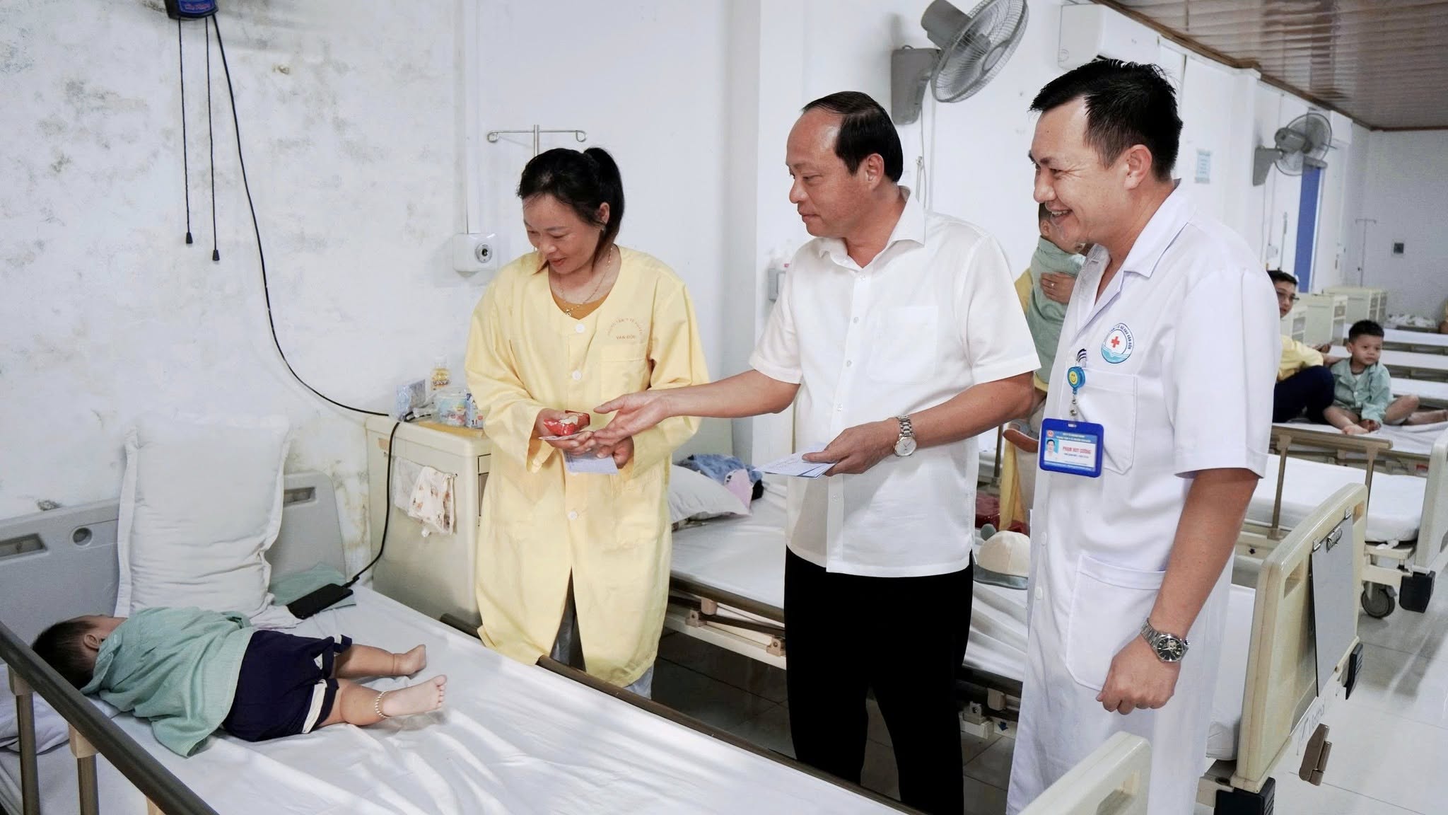 Nhân dịp này, đồng chí Vũ Đức Hưởng cũng căn dặn đội ngũ y, bác sĩ Khoa Nhi tiếp tục nêu cao tinh thần trách nhiệm, tận tụy với nghề, không ngừng nâng cao chất lượng khám chữa bệnh và chăm sóc toàn diện cho trẻ em; giúp các em nhanh chóng hồi phục sức khỏe, sớm hòa nhập cuộc sống.