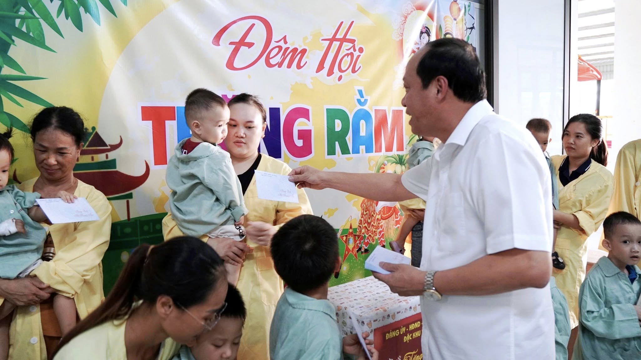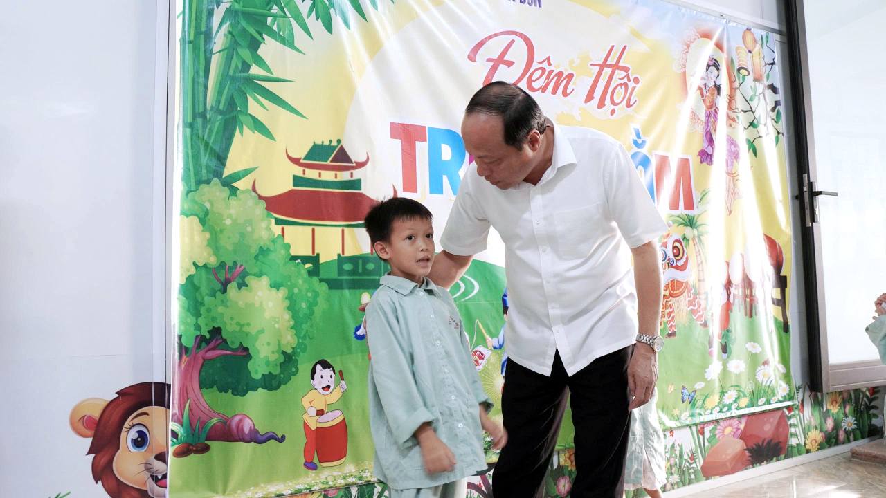 Trong không khí ấm áp, đồng chí Vũ Đức Hưởng ân cần thăm hỏi tình hình sức khỏe, động viên các bệnh nhi và gia đình đang điều trị tại Trung tâm. Đồng chí chia sẻ sự cảm thông với những em nhỏ phải đón Trung thu xa nhà, bày tỏ mong muốn các cháu luôn giữ tinh thần lạc quan, sớm bình phục để trở lại trường lớp, vui chơi cùng bạn bè.