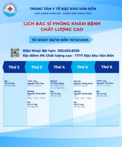 Từ ngày 13/10/2025 – 17/10/2025 Trung tâm Y tế Đặc khu Vân ĐồnĐịa chỉ: Thôn ...