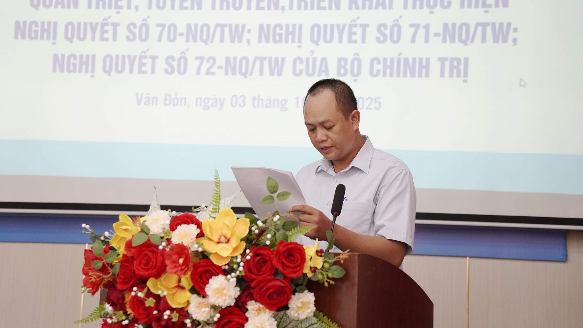 Nhằm kịp thời phổ biến, quán triệt và triển khai thực hiện các chủ trương, nghị quyết quan trọng của Đảng, vừa qua, Đảng ủy Trung tâm Y tế Đặc khu Vân Đồn đã tổ chức Hội nghị quán triệt, tuyên truyền và triển khai Nghị quyết số 70-NQ/TW, Nghị quyết số 71-NQ/TW và Nghị quyết số 72-NQ/TW của Bộ Chính trị.