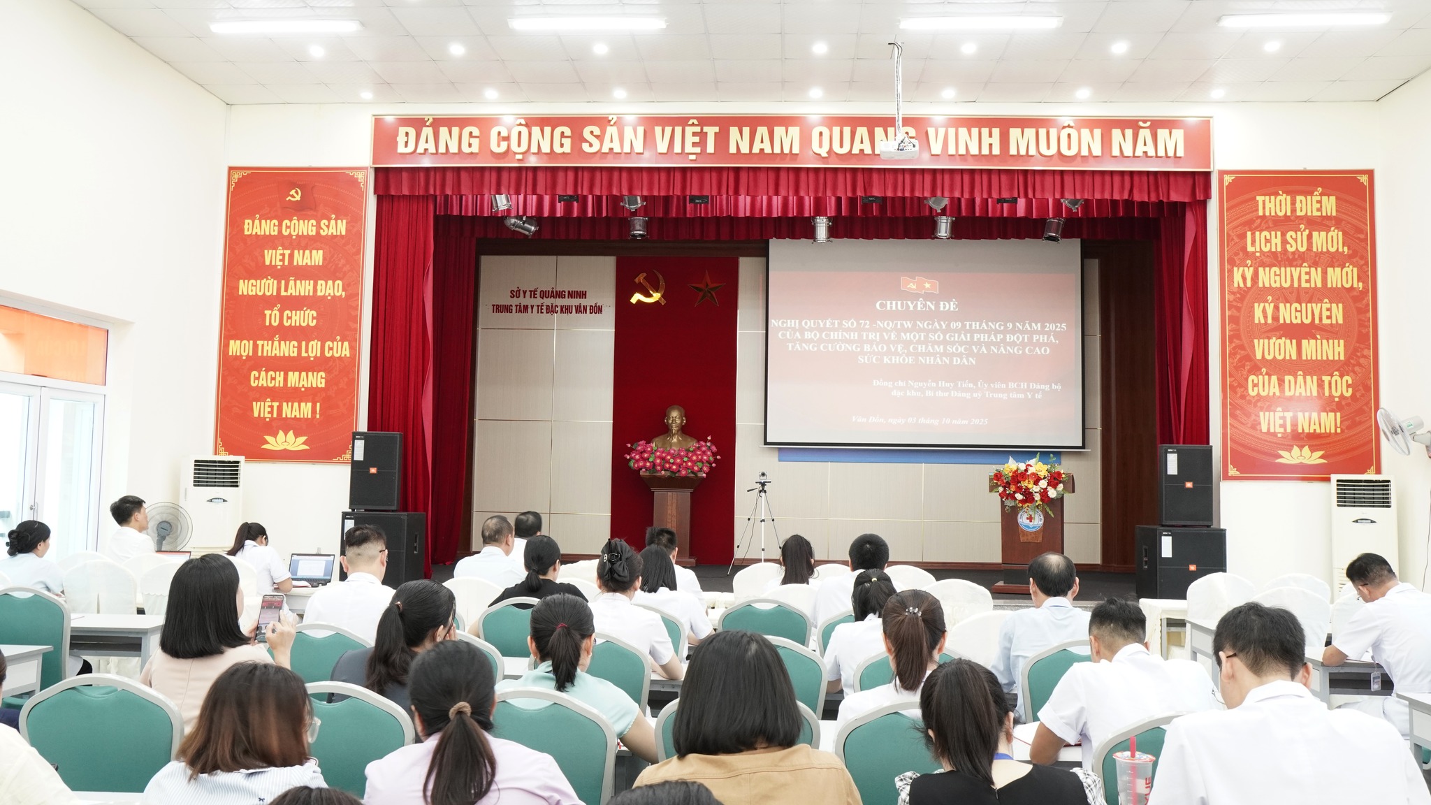 Tham dự hội nghị có TTƯT. BSCKII Nguyễn Huy Tiến – Bí thư Đảng ủy, Giám đốc Trung tâm Y tế Đặc khu Vân Đồn, cùng toàn thể đảng viên thuộc các chi bộ trực thuộc.