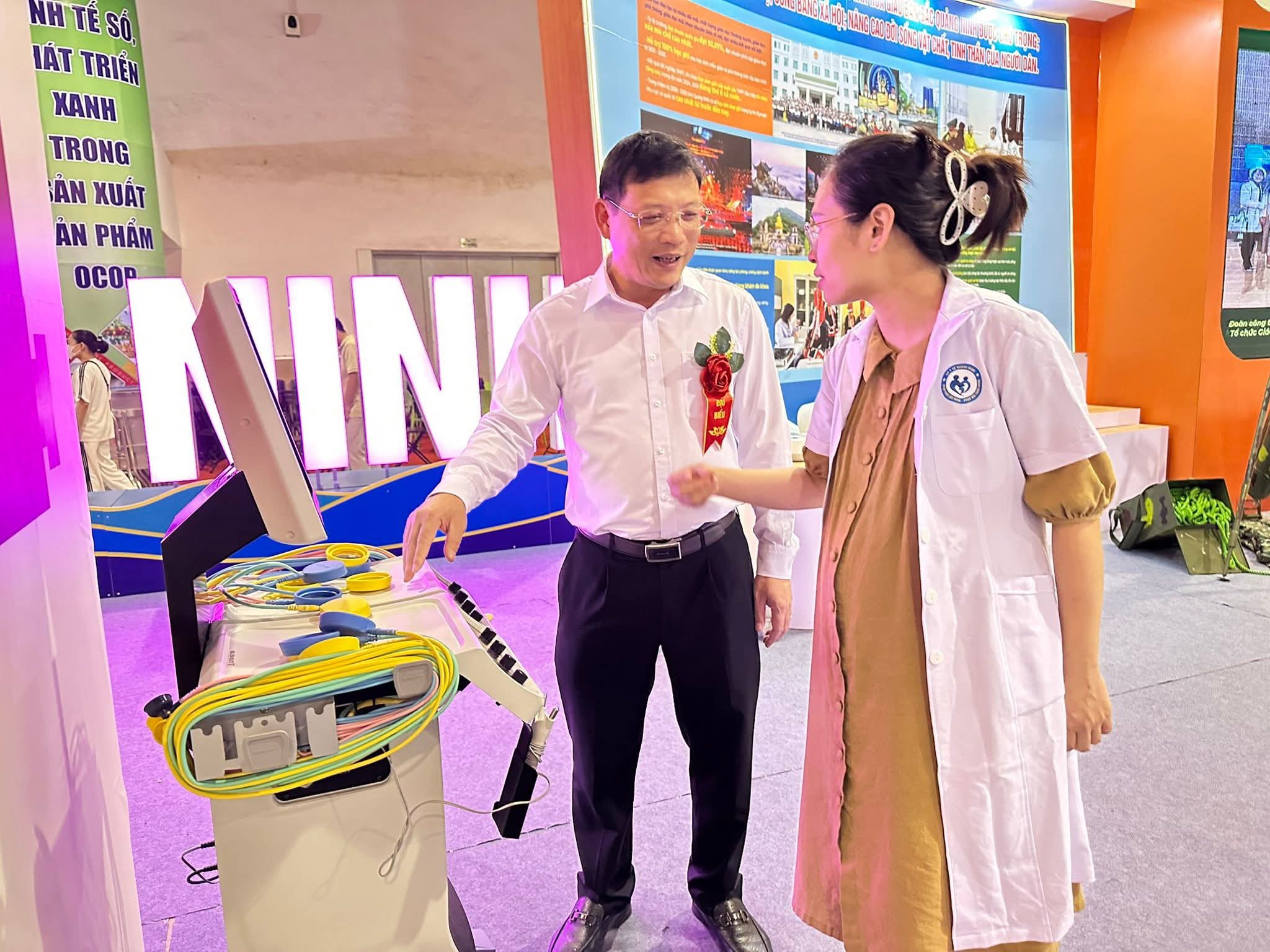 Không gian trưng bày của ngành Y tế được thiết kế hiện đại, sinh động, phản ánh hành trình chuyển đổi mạnh mẽ của y tế Quảng Ninh trong 5 năm qua: từ chuyển đổi số và bệnh án điện tử, xây dựng mô hình quản lý hồ sơ sức khỏe toàn dân, đến phát triển hệ thống y tế cơ sở và nâng cao chất lượng khám chữa bệnh. Các sản phẩm, mô hình trưng bày không chỉ giới thiệu thành tựu chuyên môn mà còn thể hiện hình ảnh người thầy thuốc Quảng Ninh tận tâm, chuyên nghiệp, luôn đặt người bệnh làm trung tâm phục vụ.