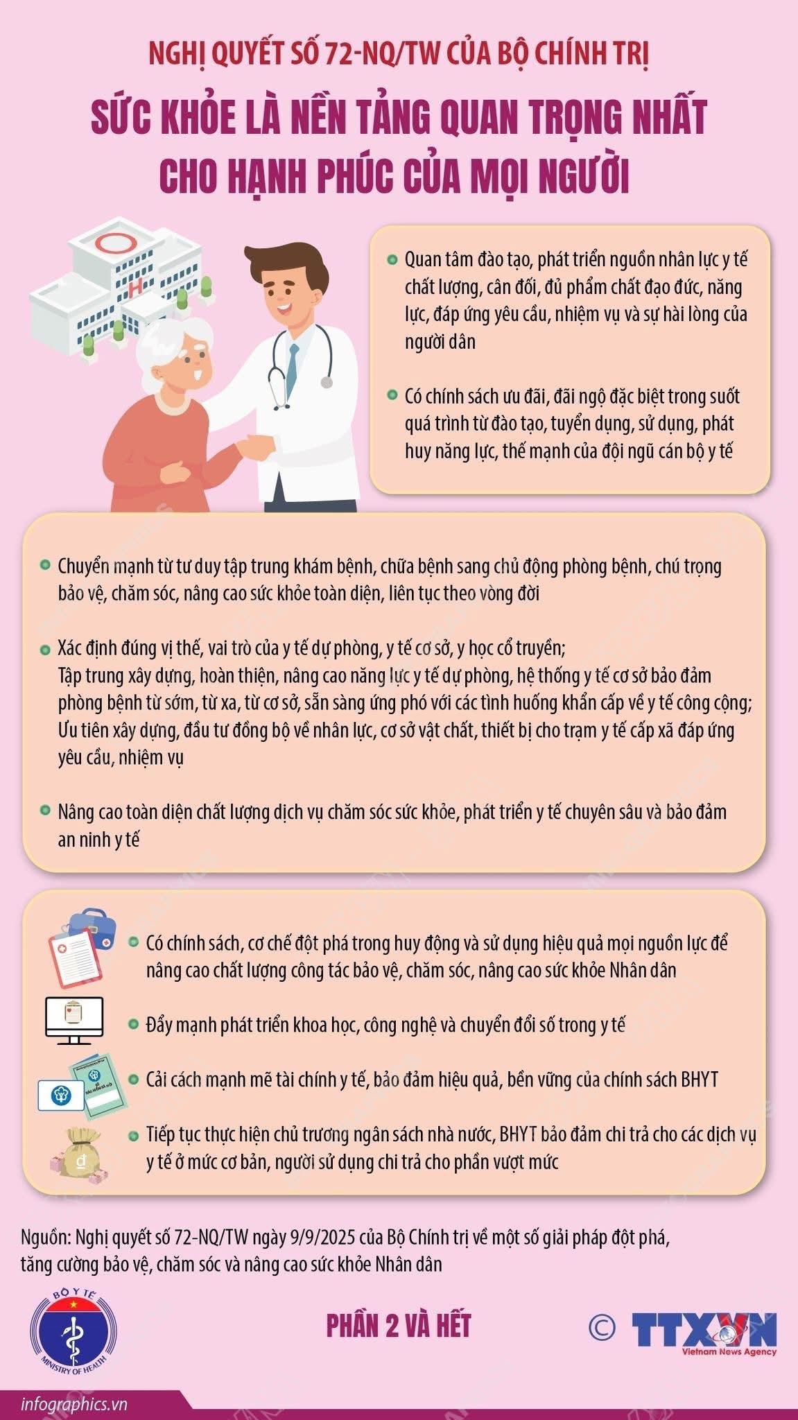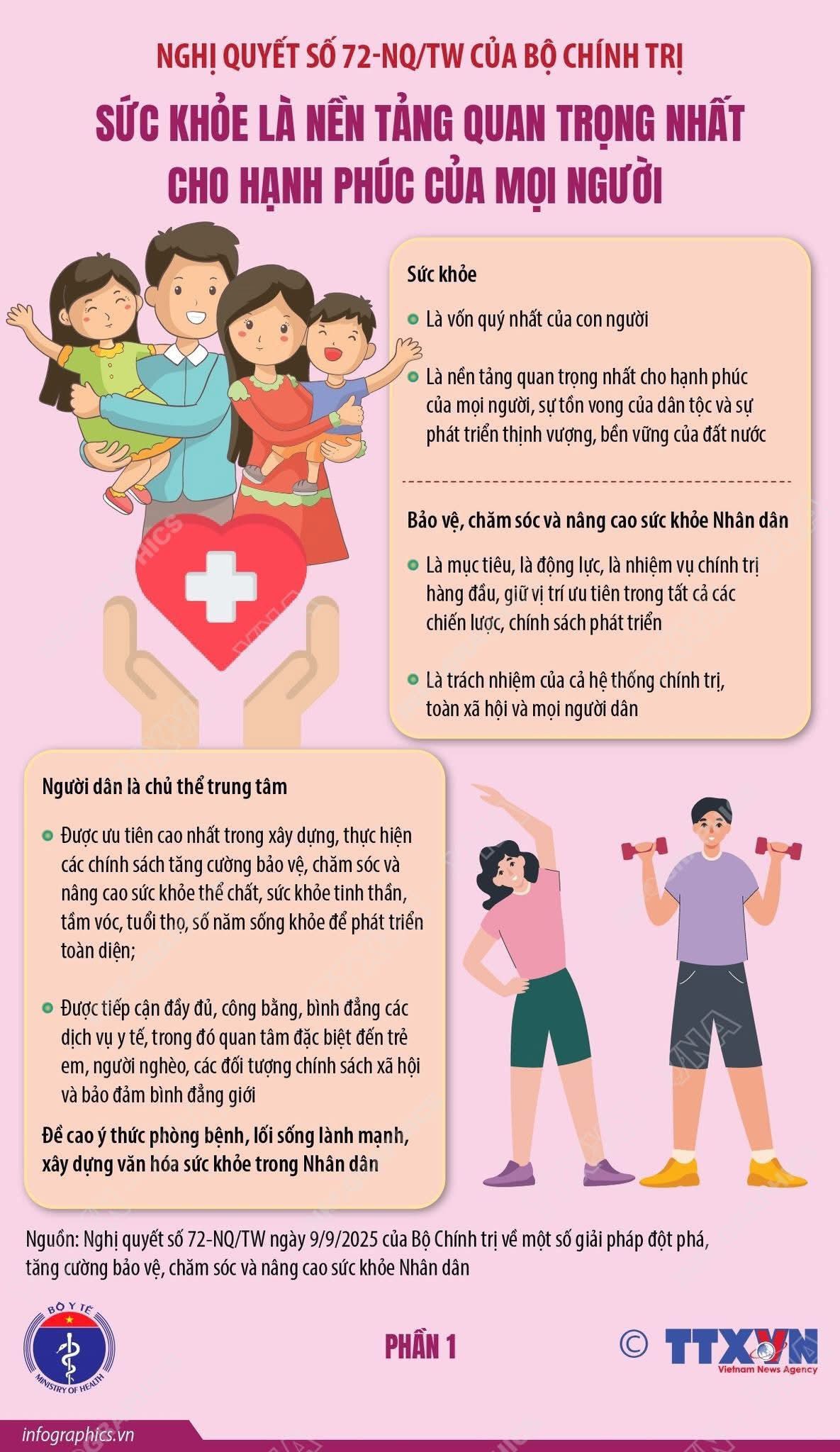 Nghị quyết số 72-NQ/TW về một số giải pháp đột phá, tăng cường bảo vệ, chăm sóc và nâng cao sức khỏe nhân dân được Bộ Chính trị ban hành ngày 9/9/2025 có ý nghĩa đặc biệt quan trọng, tiếp tục thể hiện sự quan tâm sâu sắc của Đảng đối với sức khỏe của mỗi người dân để hướng đến mục tiêu xây dựng một nước Việt Nam khỏe mạnh.