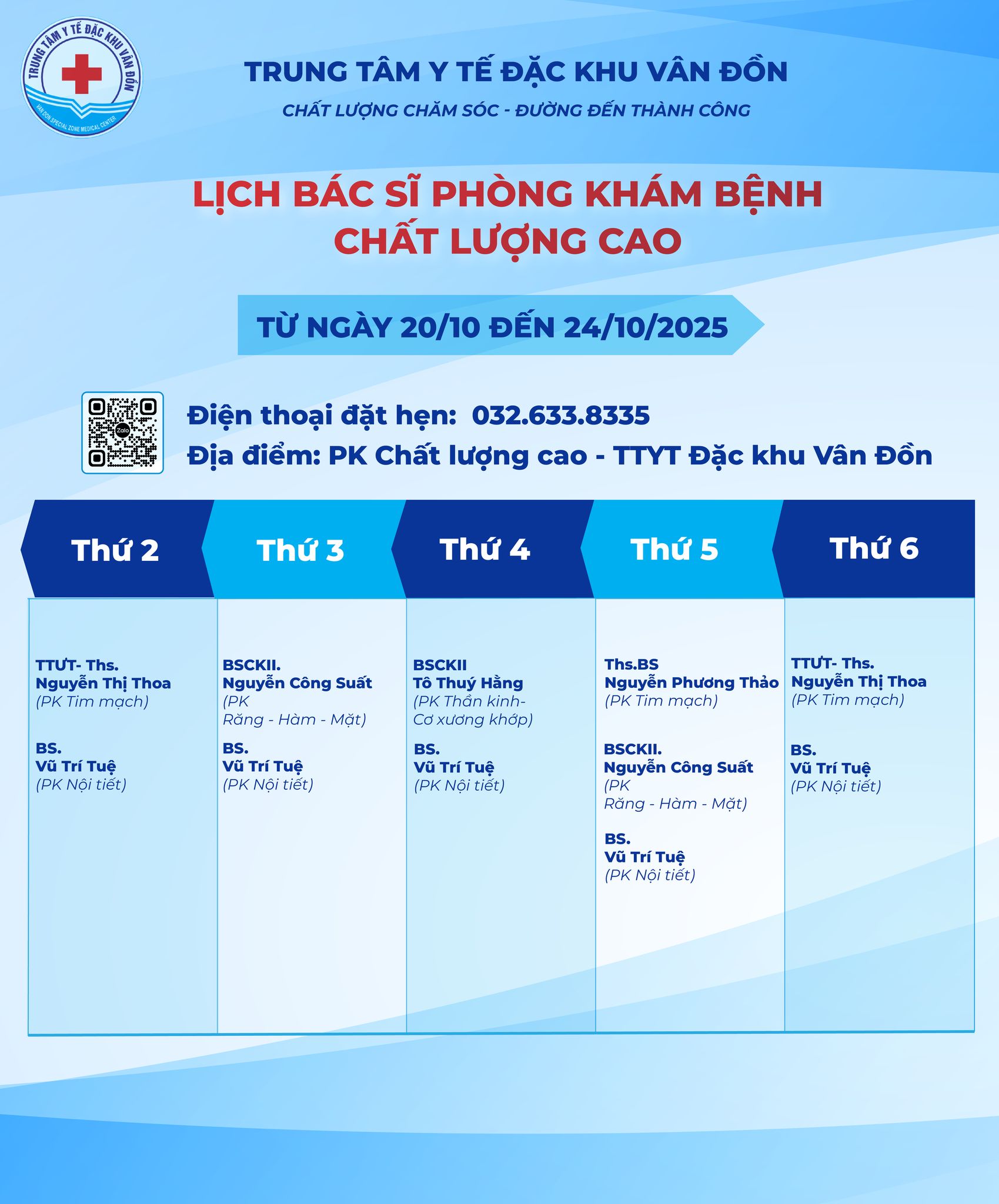 Thông báo lịch bác sĩ phòng khám bệnh chất lượng cao