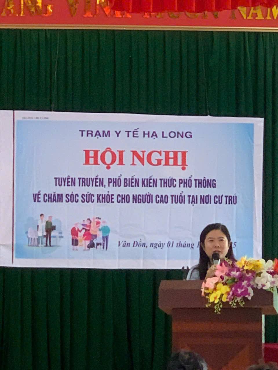 Tham dự hội nghị có lãnh đạo các ban, ngành, đoàn thể của các thôn, cán bộ y tế cùng đông đảo người cao tuổi trên địa bàn. Tại chương trình, bà Phạm Thị Thanh – Phó trưởng Trạm Y tế Hạ Long, cùng các cán bộ trạm đã trực tiếp tuyên truyền, phổ biến kiến thức chăm sóc sức khỏe người cao tuổi. Nội dung tập trung vào việc giữ gìn sức khỏe tại nhà, chế độ dinh dưỡng hợp lý, phòng ngừa các bệnh mãn tính thường gặp và nâng cao chất lượng cuộc sống. Tờ rơi tuyên truyền cũng được phát tận tay để người dân dễ dàng áp dụng.