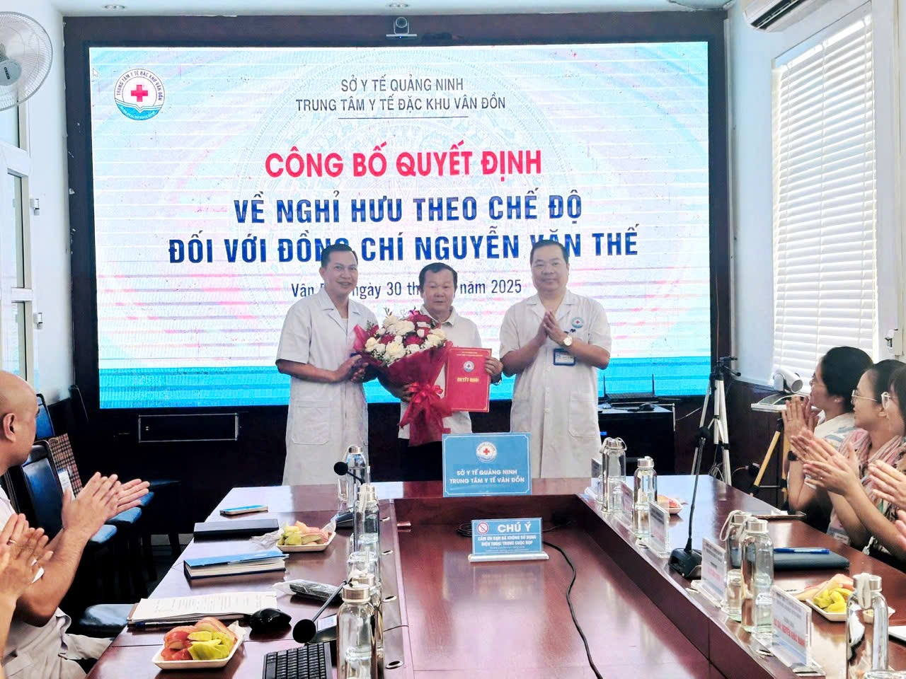 Đồng chí Nguyễn Văn Thế chính thức nghỉ hưu, khép lại hành trình 23 năm gắn bó với ngành y tế Vân Đồn, để lại nhiều dấu ấn tốt đẹp trong lòng đồng nghiệp và người dân địa phương.