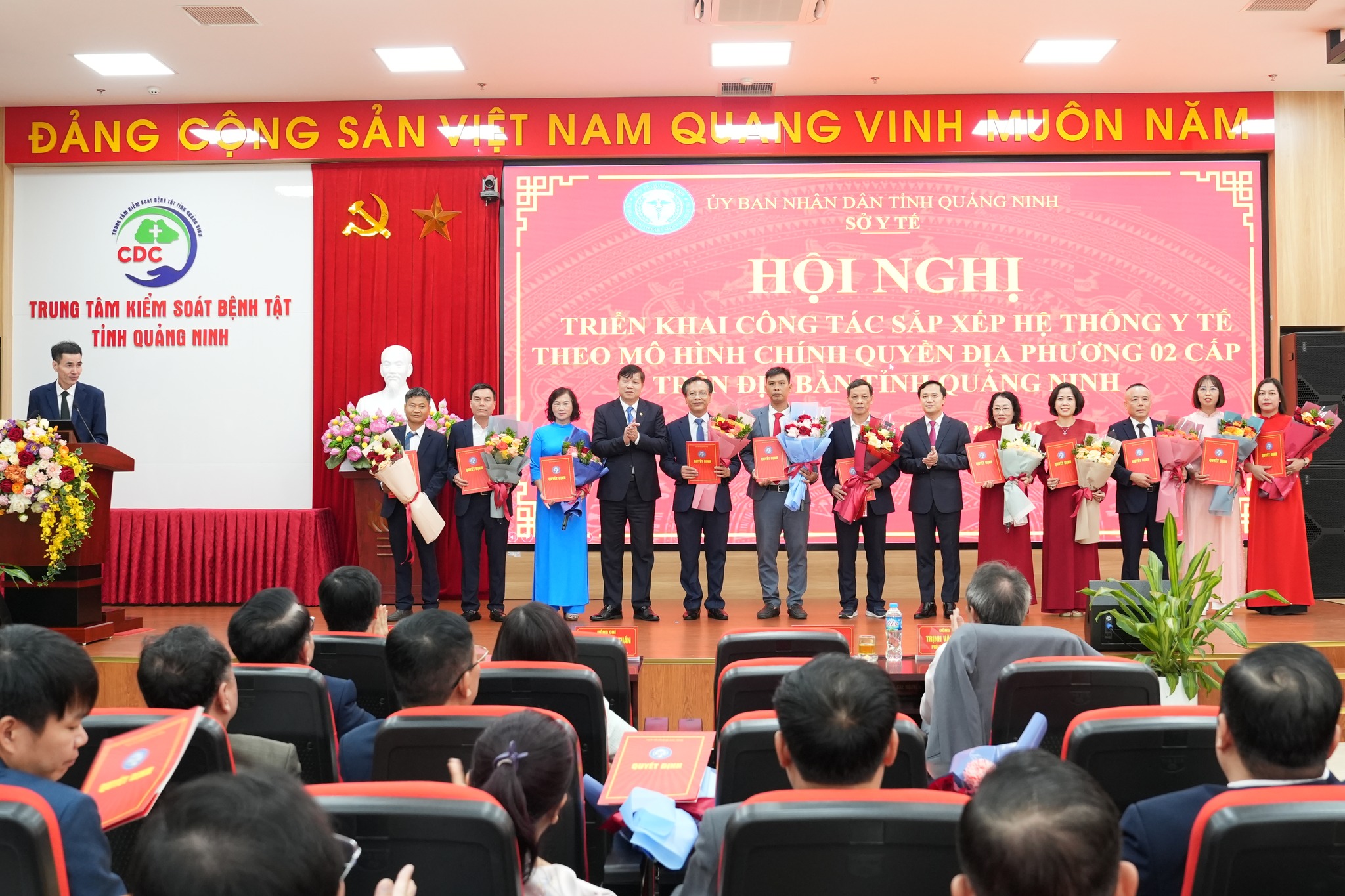 Trong ngày 27/10/2025, tại Hội nghị triển khai công tác sắp xếp hệ thống y tế theo mô hình hai cấp tổ chức tại Trung tâm Kiểm soát bệnh tật tỉnh, thừa ủy quyền của UBND tỉnh Quảng Ninh, Sở Y tế đã trao các quyết định thành lập, tổ chức lại các bệnh viện đa khoa khu vực, trạm y tế xã – phường – đặc khu, cùng quyết định bổ nhiệm nhân sự lãnh đạo các đơn vị được thành lập, tổ chức lại.